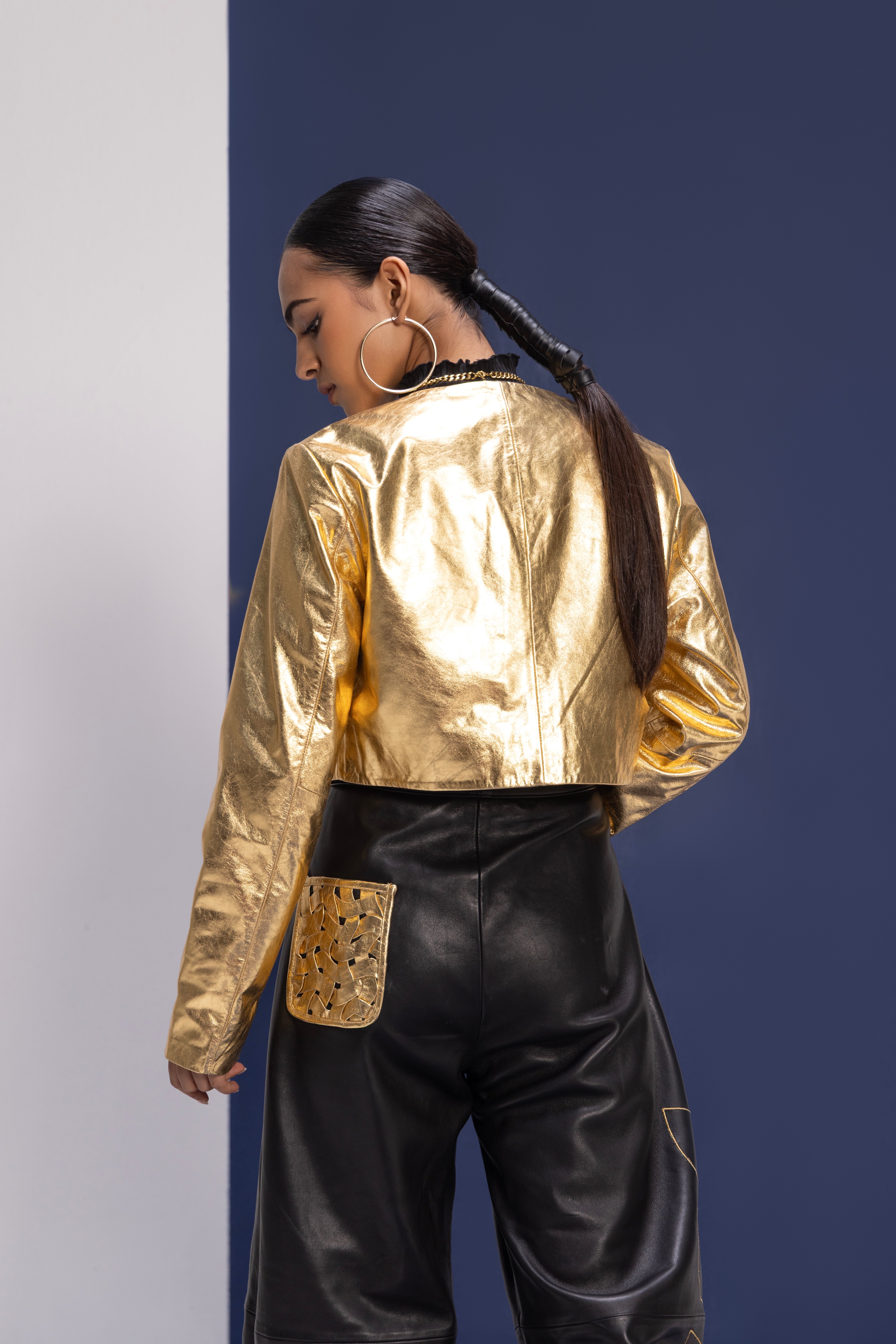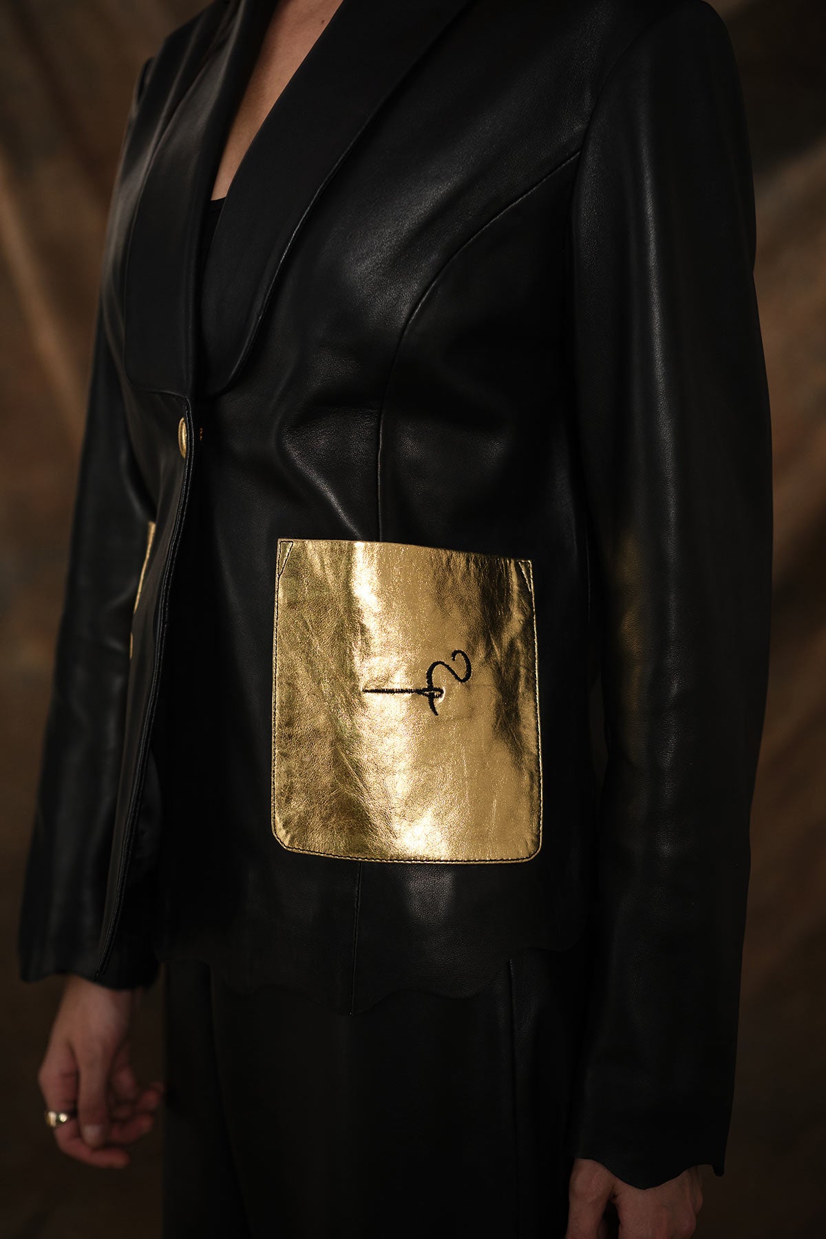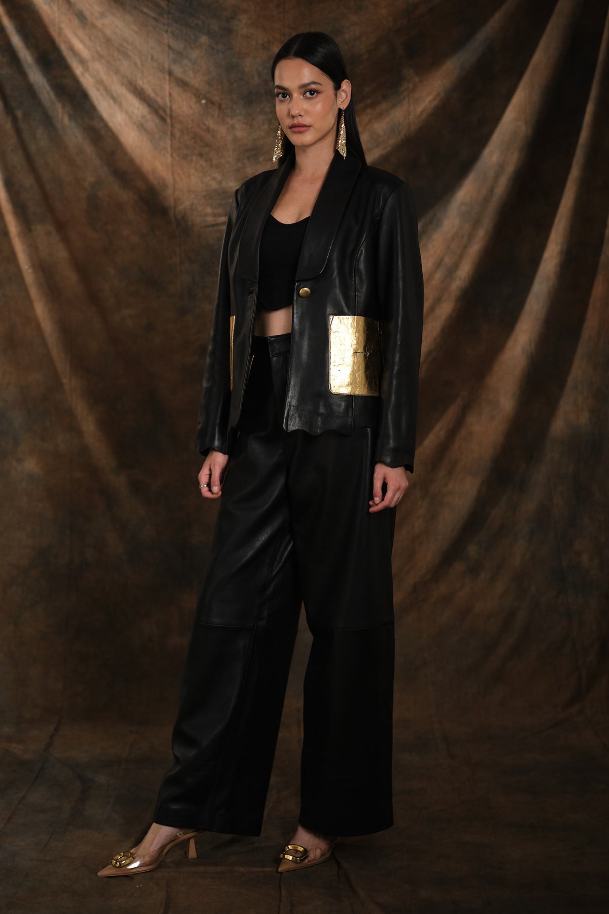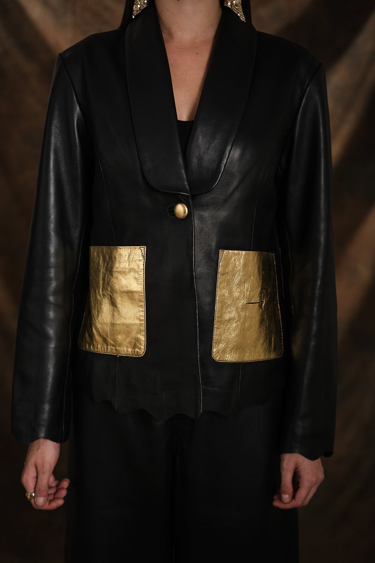 Noir Gemstone Leather Blazer