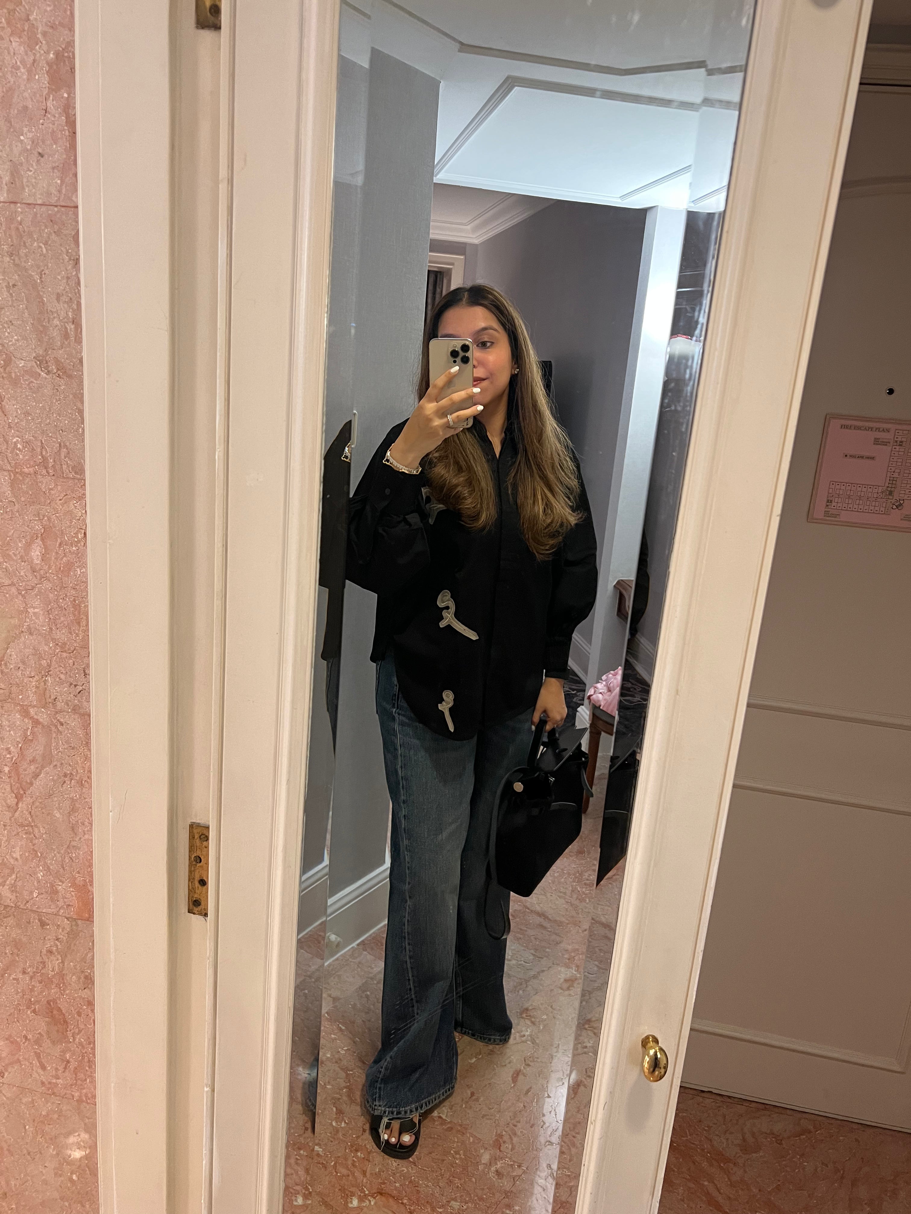 Curated in glazed cotton, this button-up shirt features signature leather appliqués, voluminous sleeves, and elasticated cuffs. A relaxed silhouette with elevated edge.