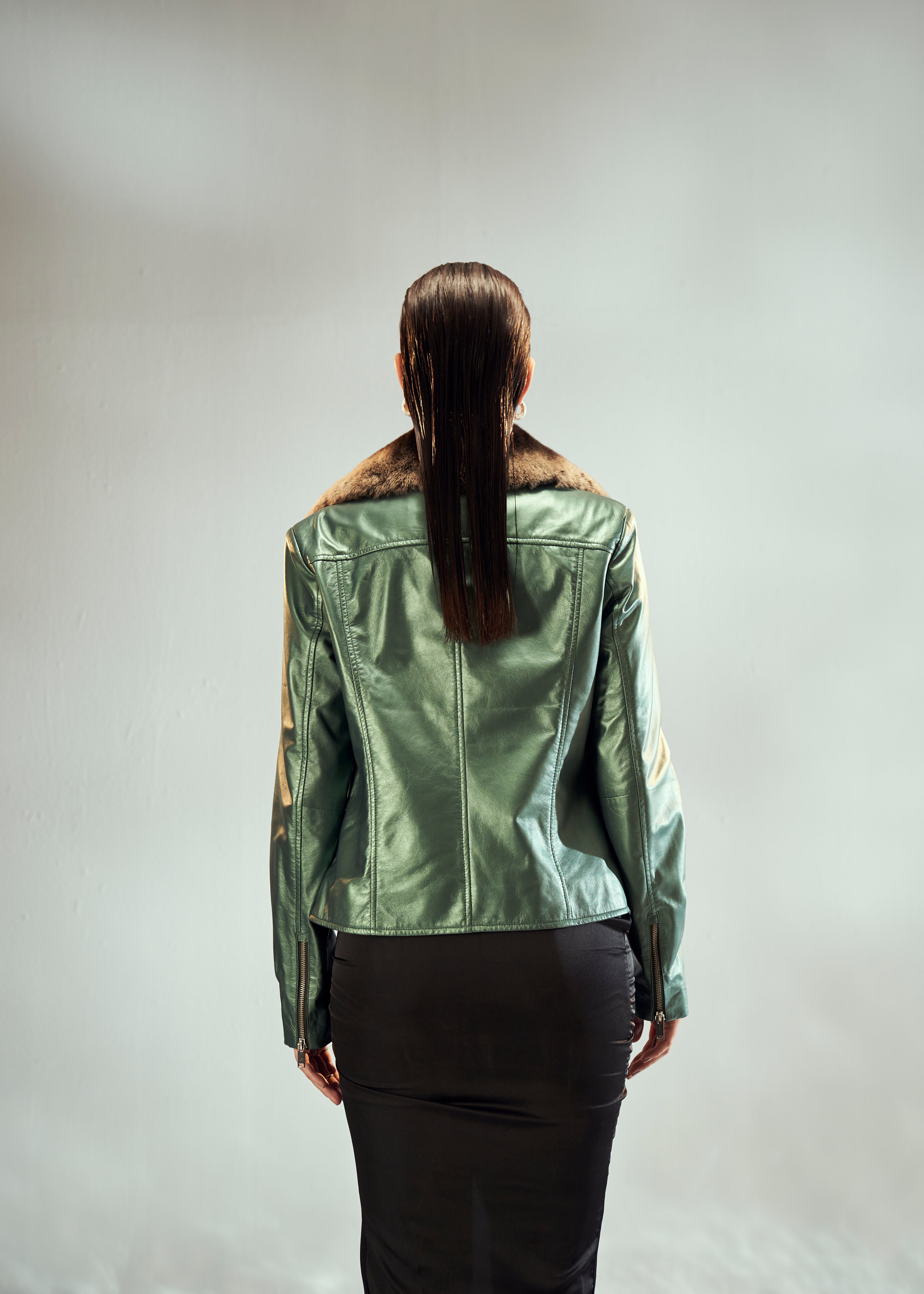 Bahaar in Emerald Biker Leather Jacket