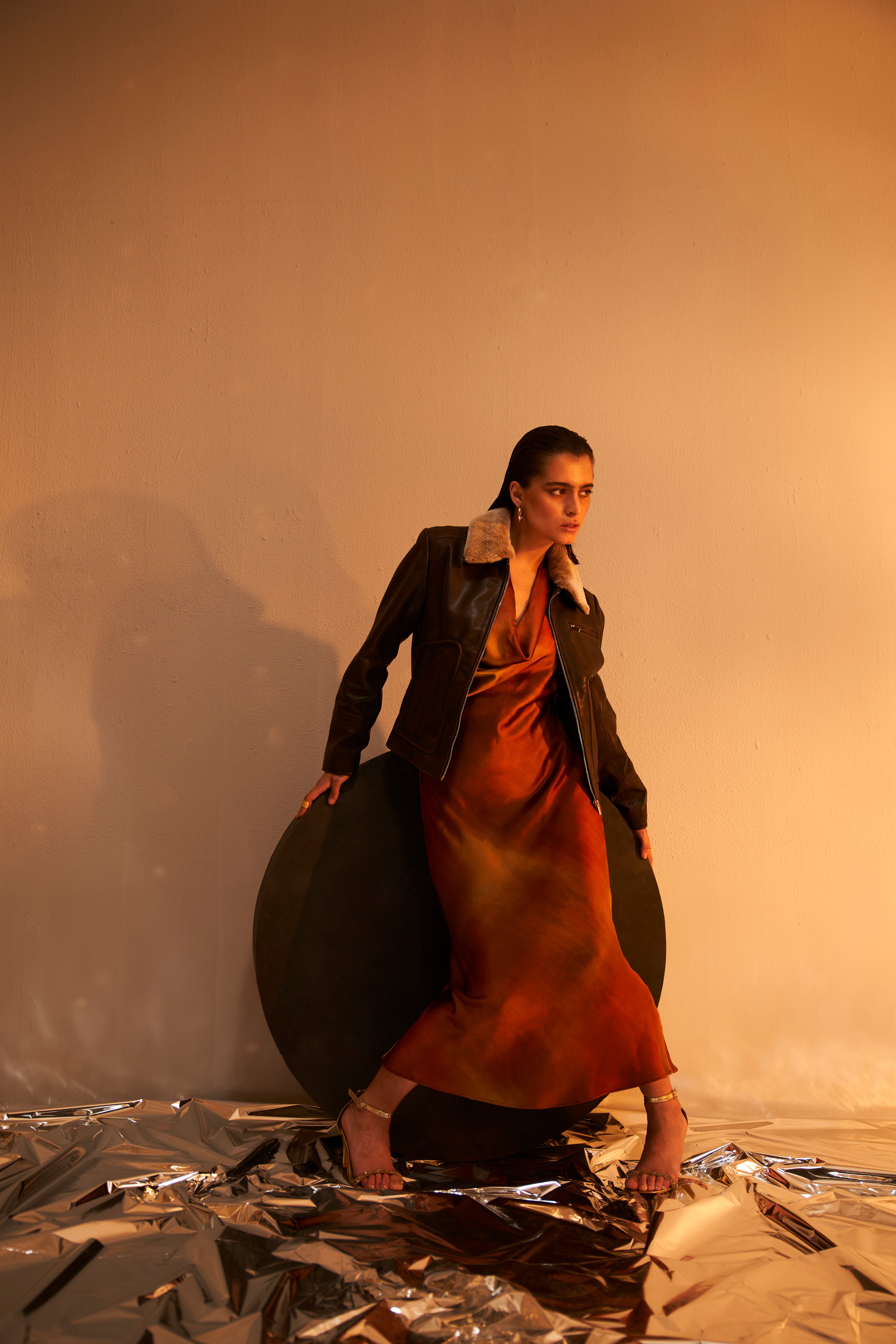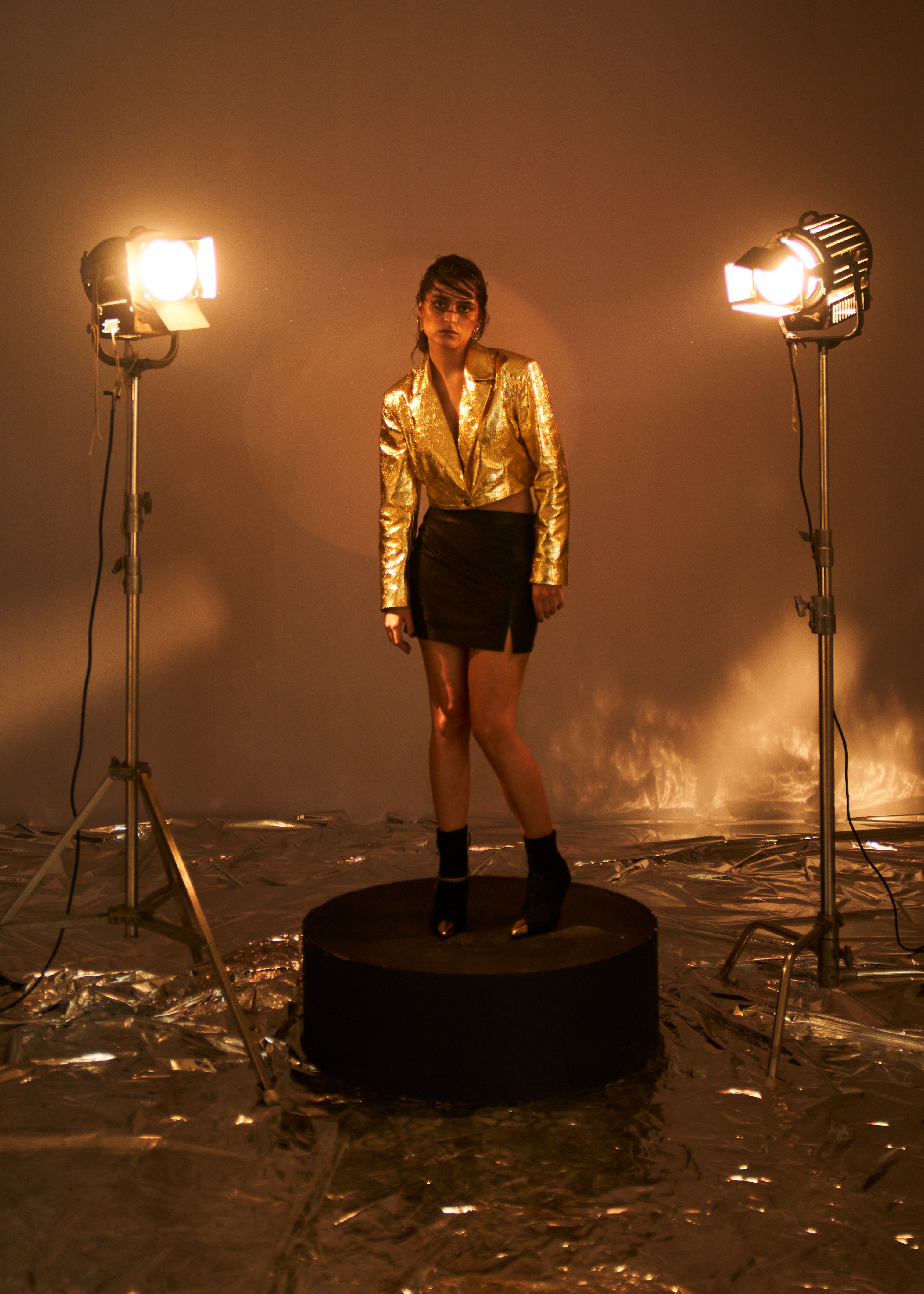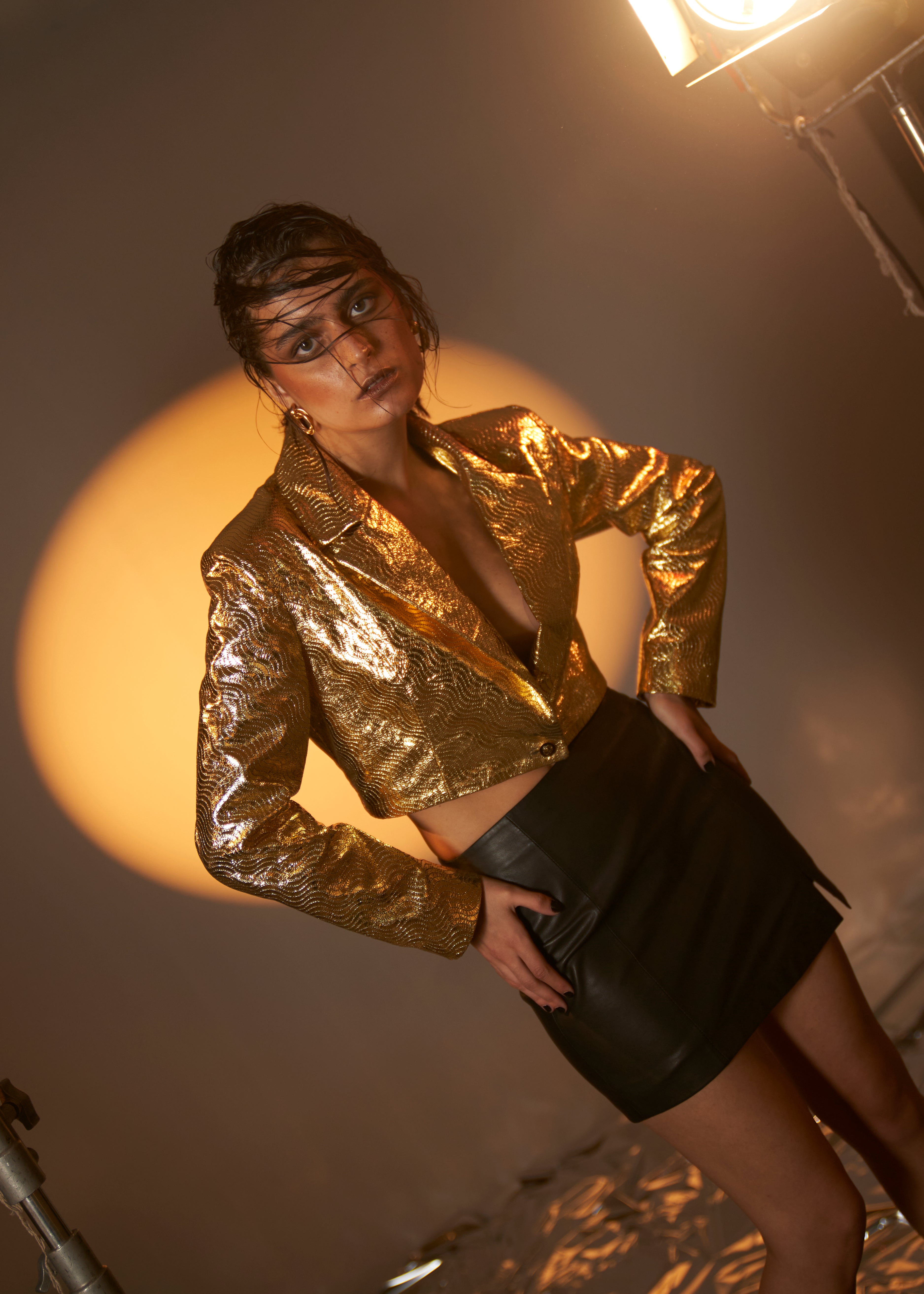 Chandni Nayyar in Champagne Gold Leather Shacket