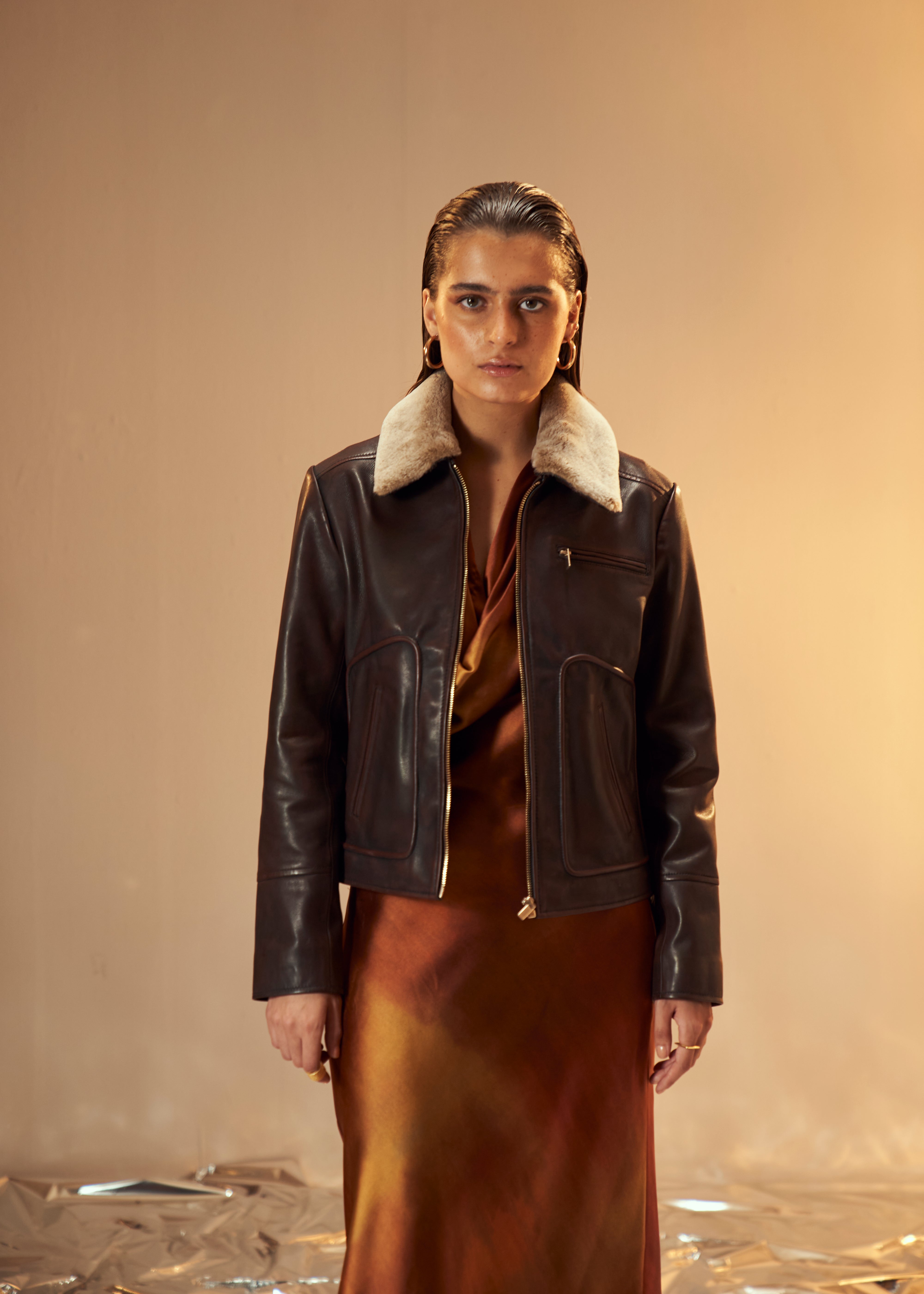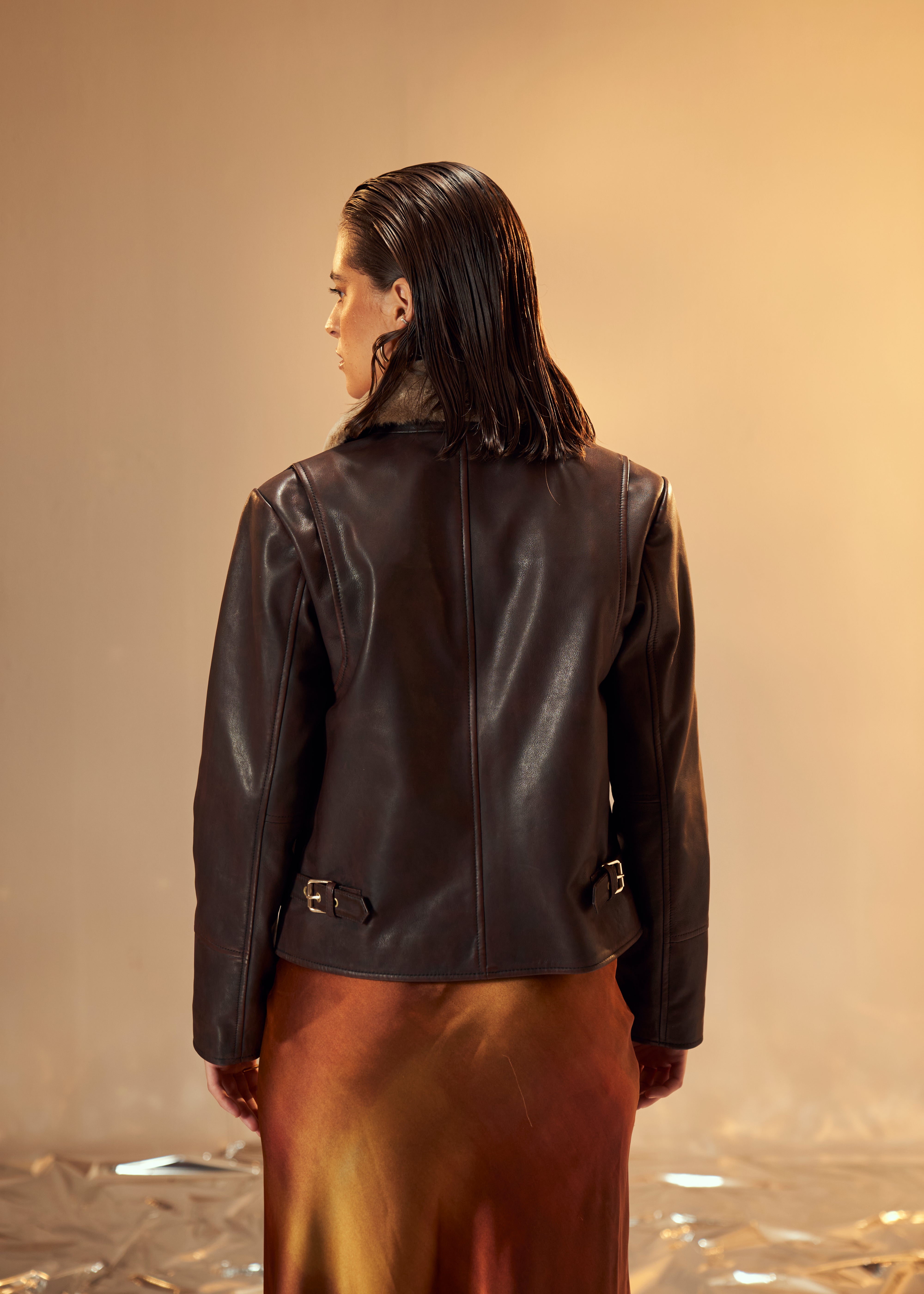 Karma Dhingra in Espresso Leather Jacket