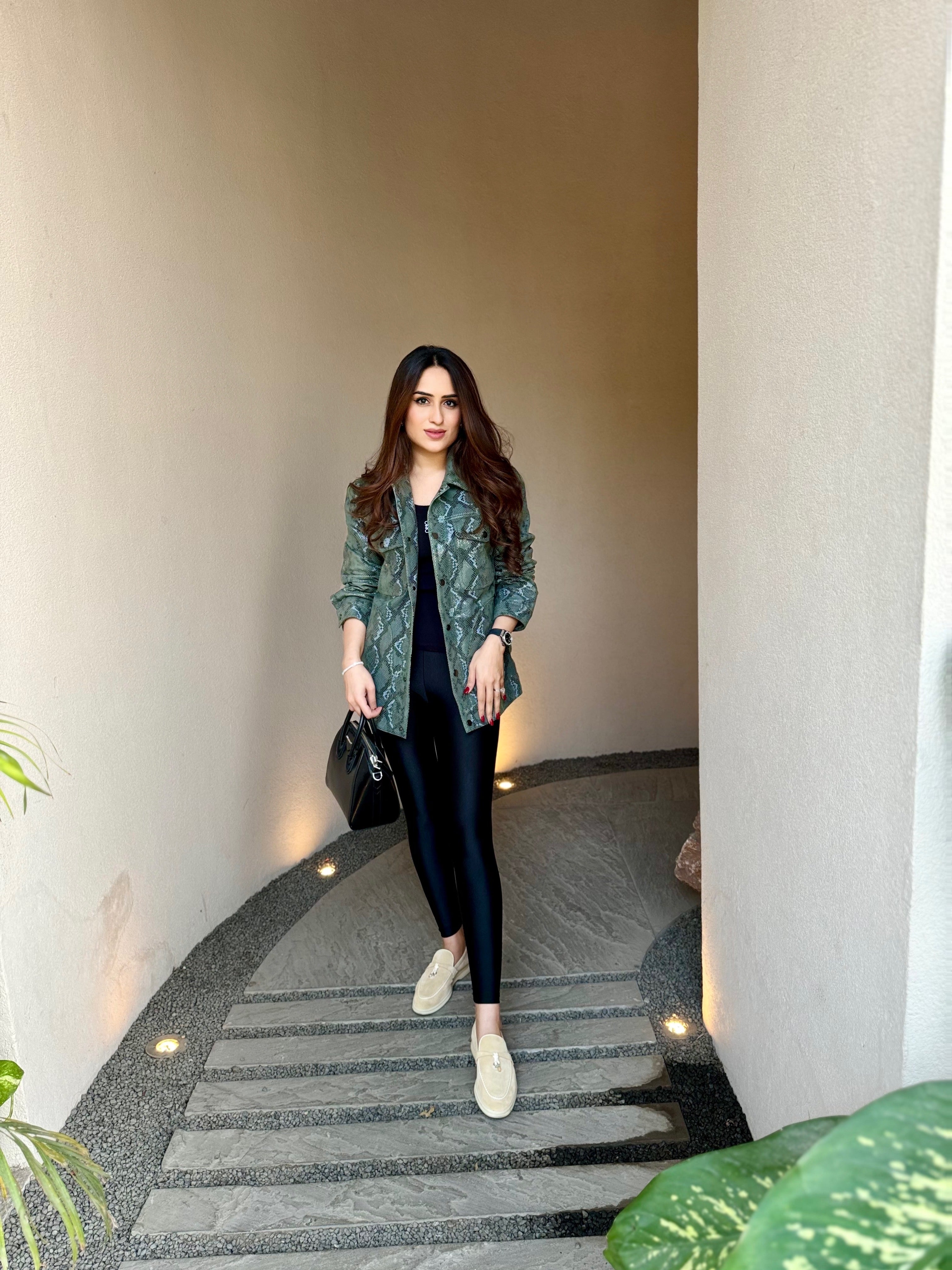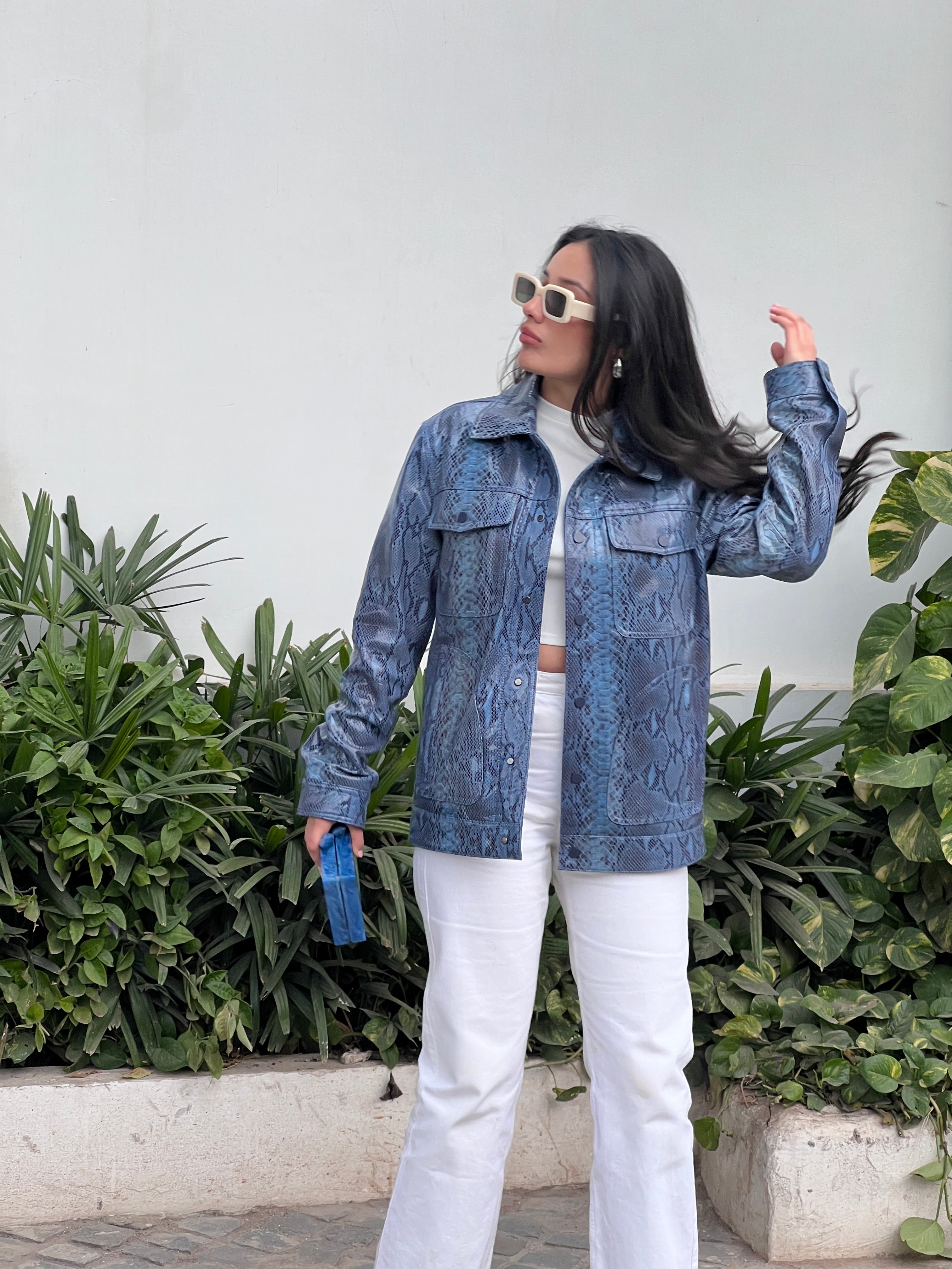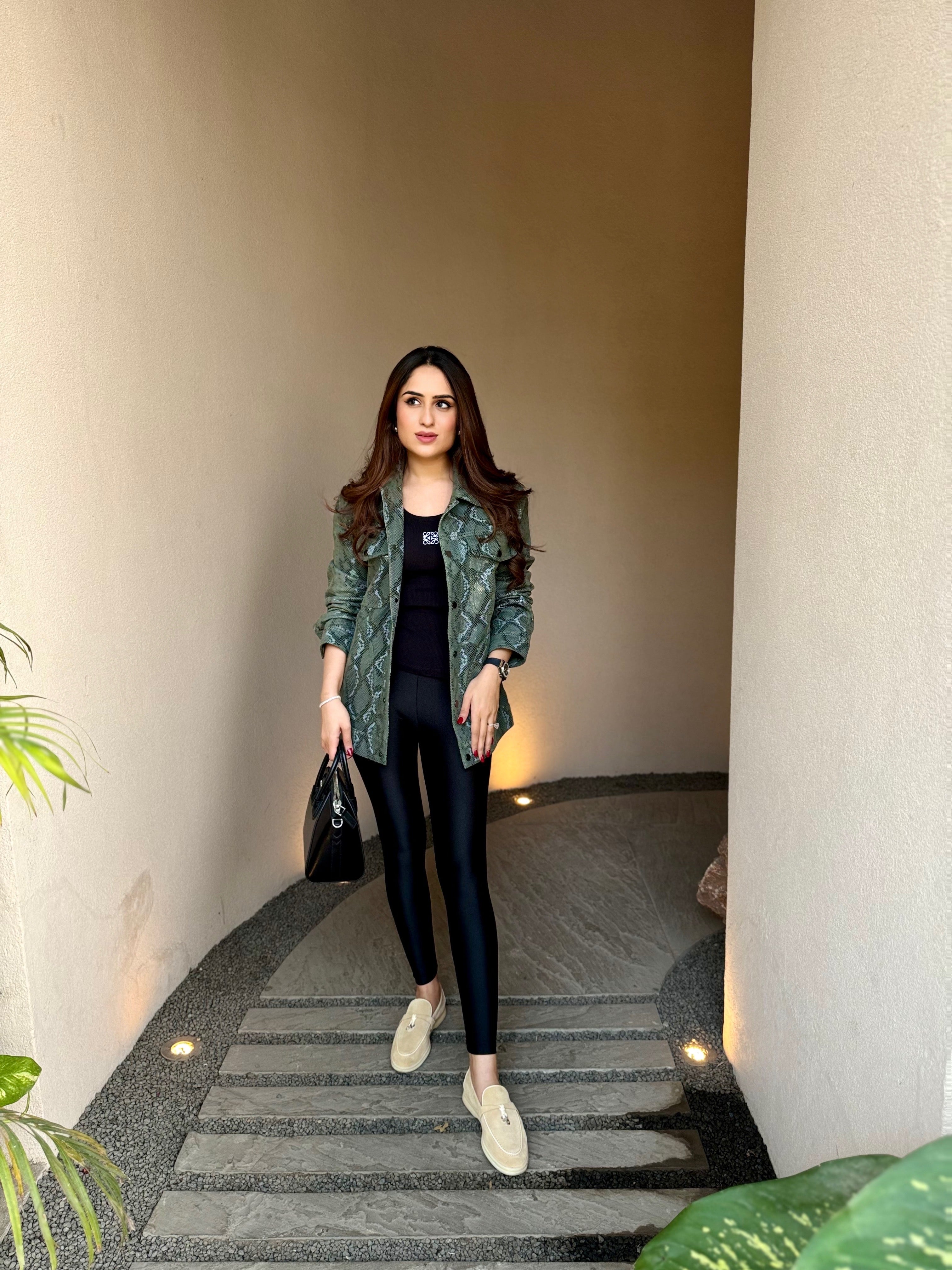 Meghna Pahwa in Unisex Snakeskin Pattern Leather Jacket