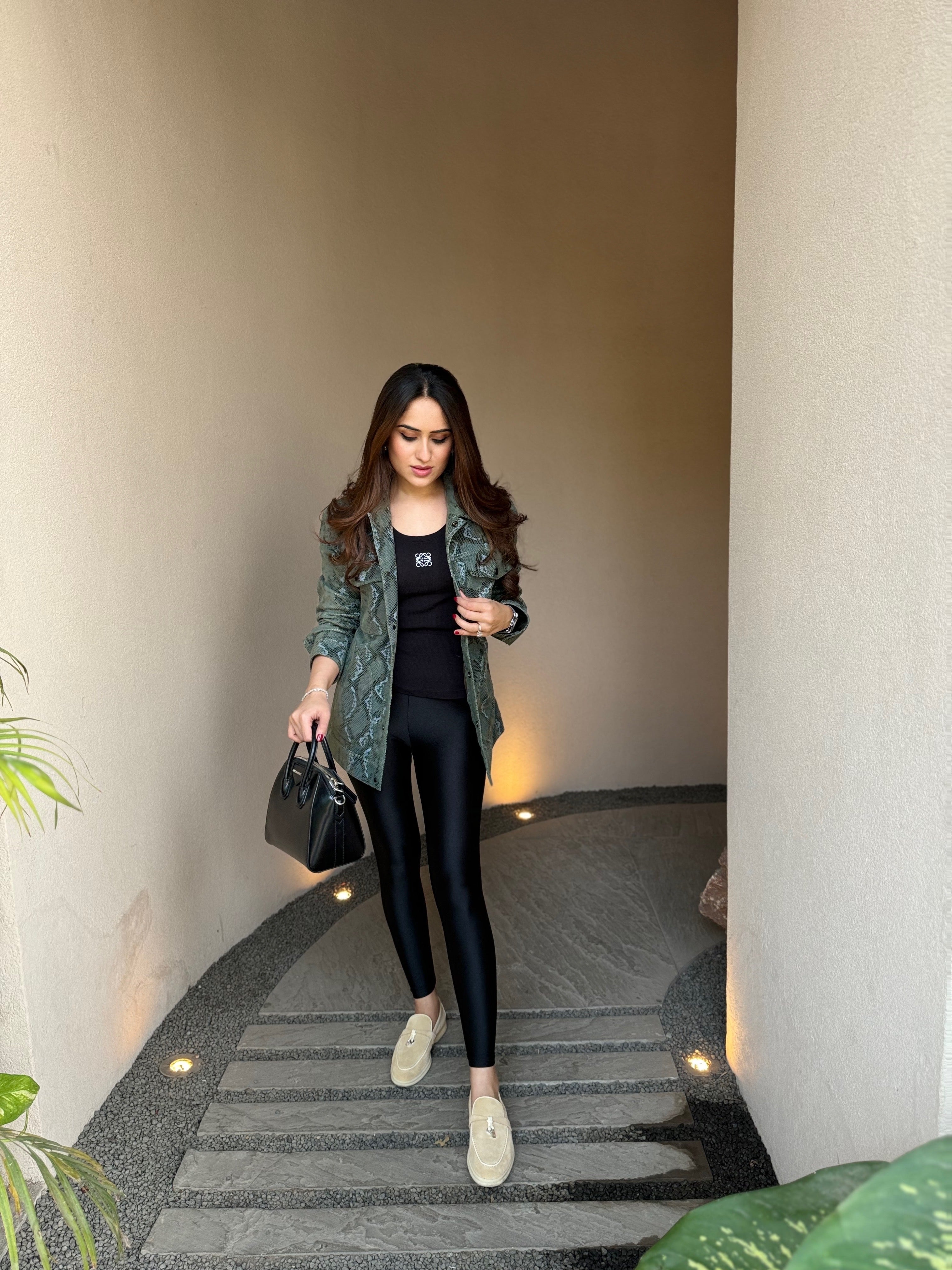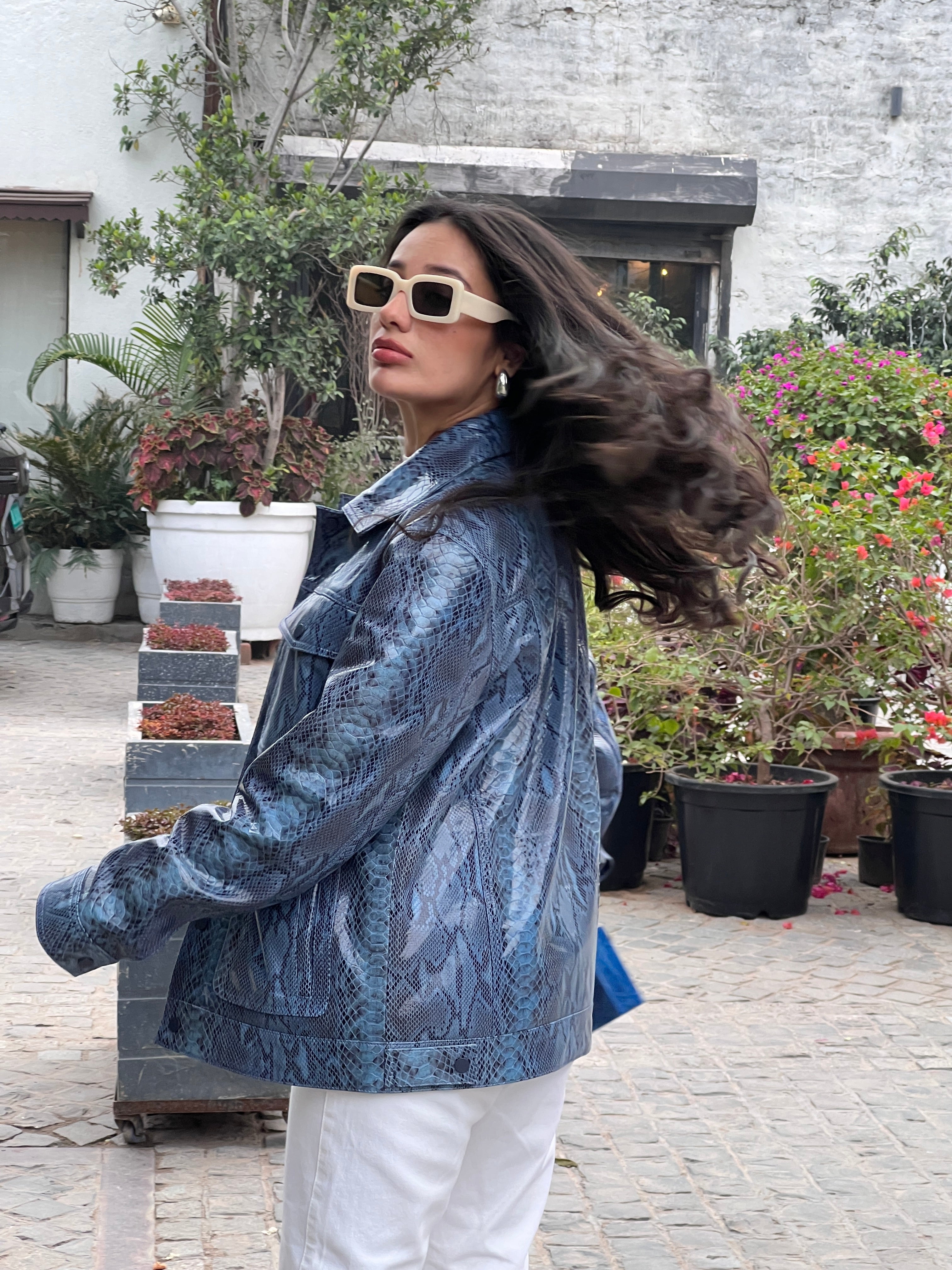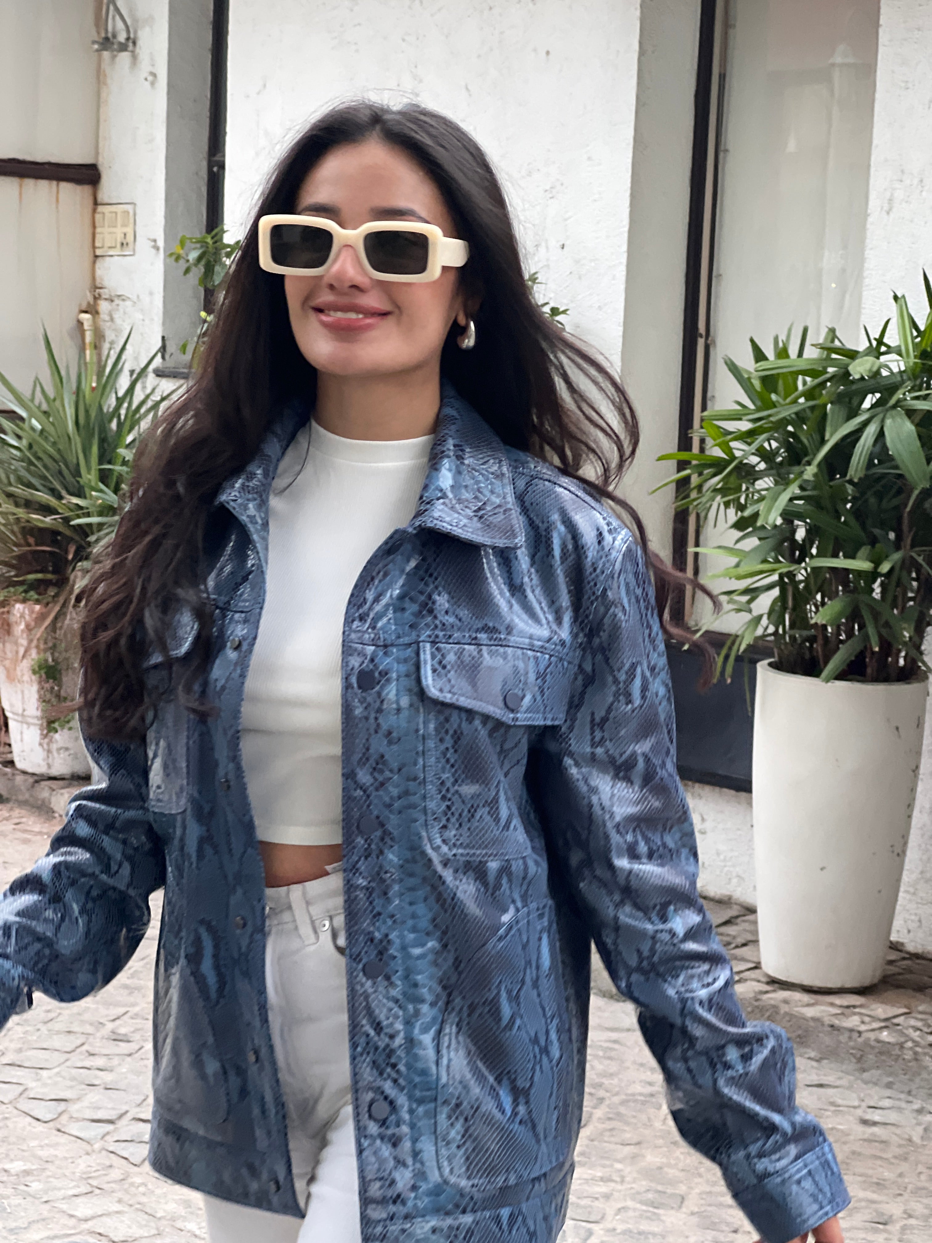 Meghna Pahwa in Unisex Snakeskin Pattern Leather Jacket