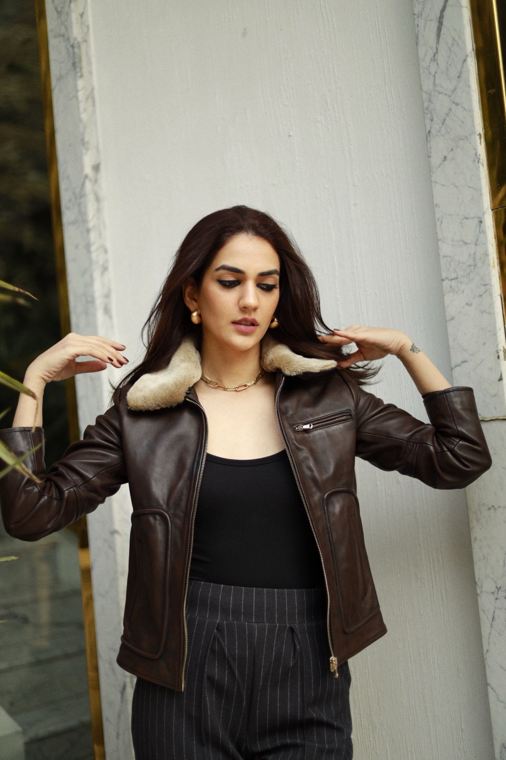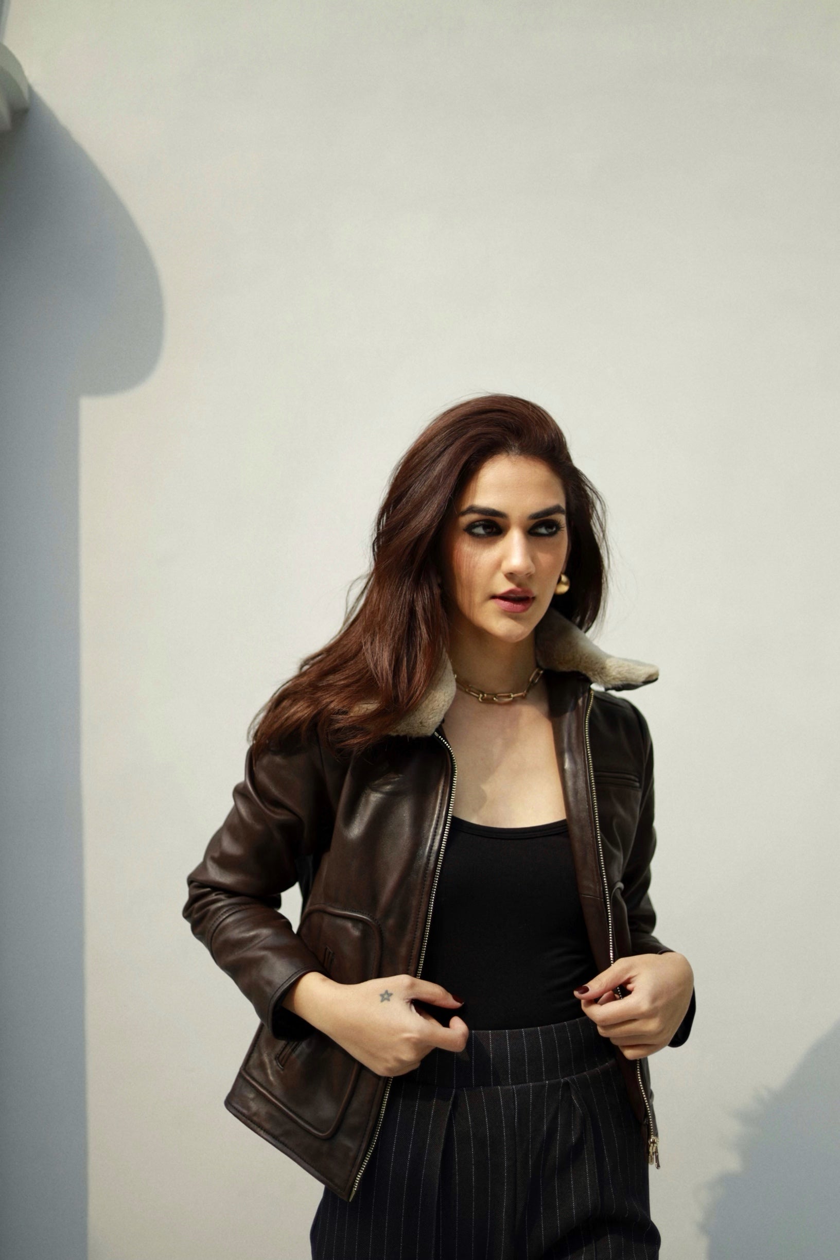 Shanaya Kapoor in Espresso Leather Jacket