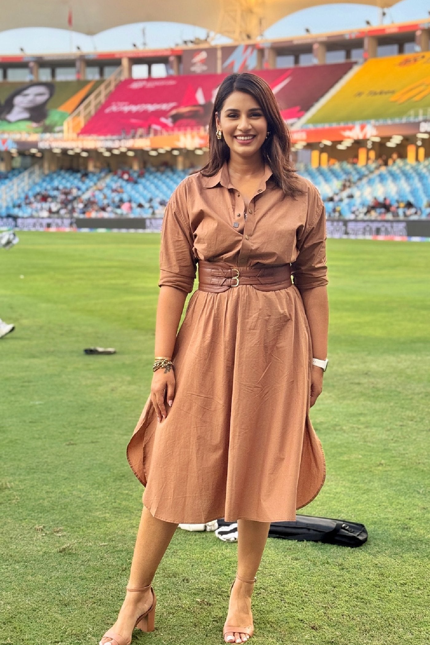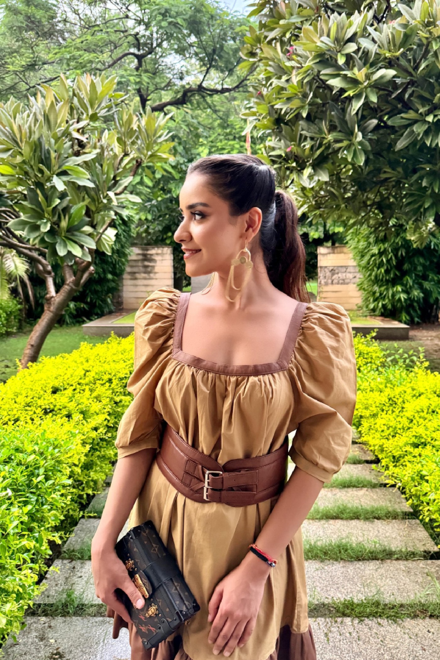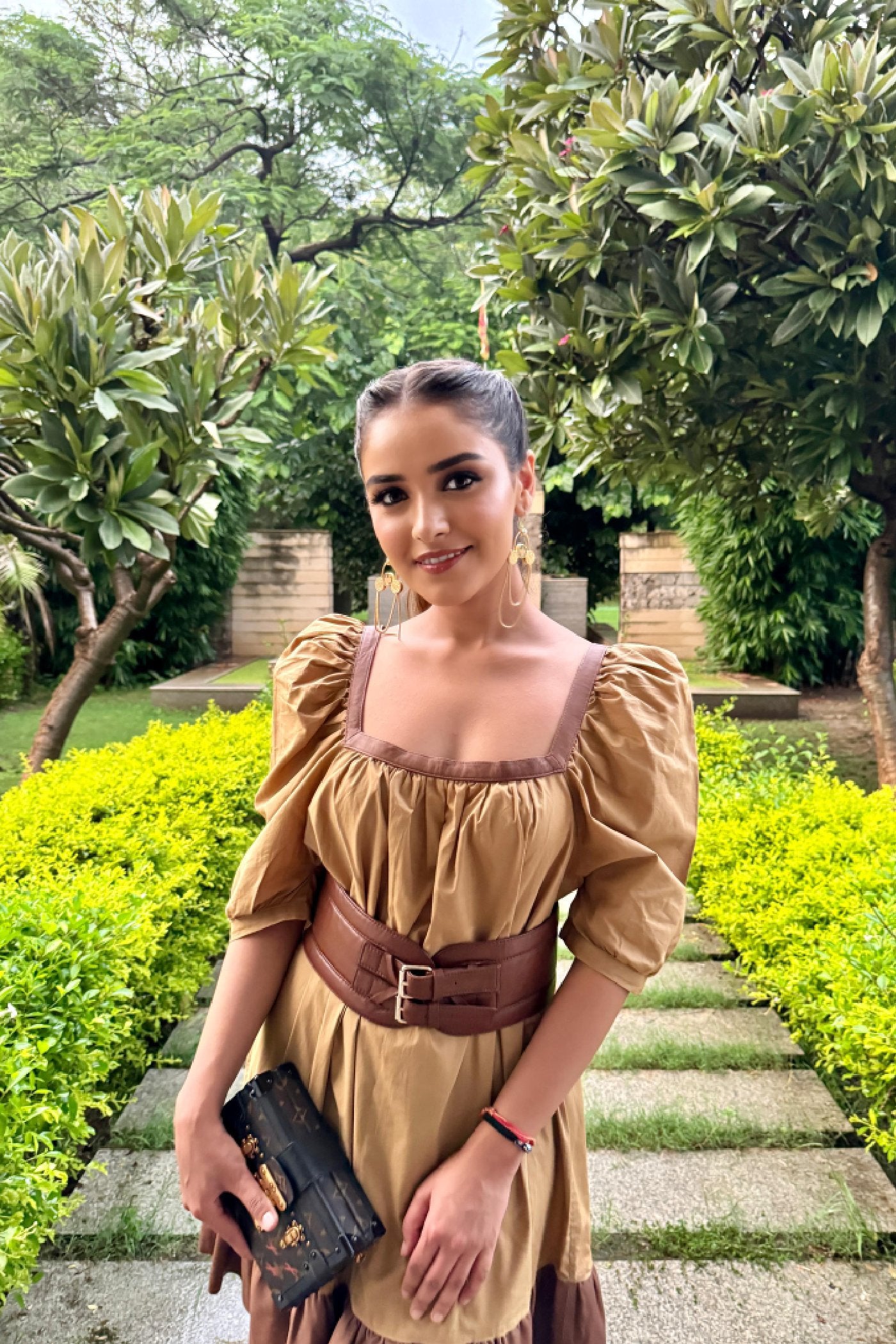 Neha Nagar in Caramello Leather Top