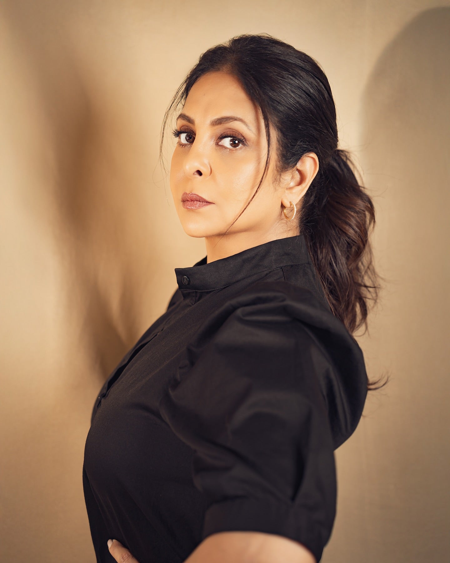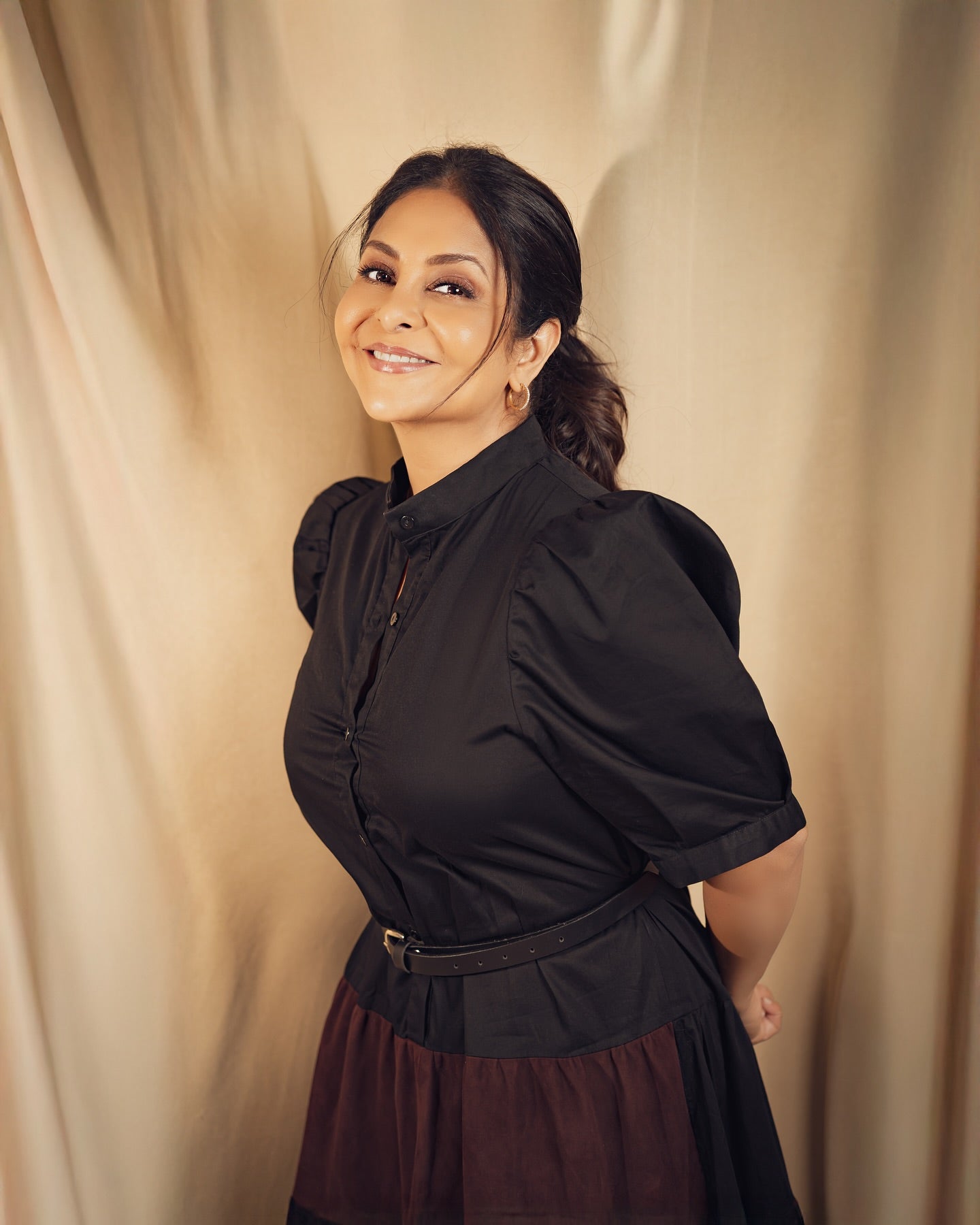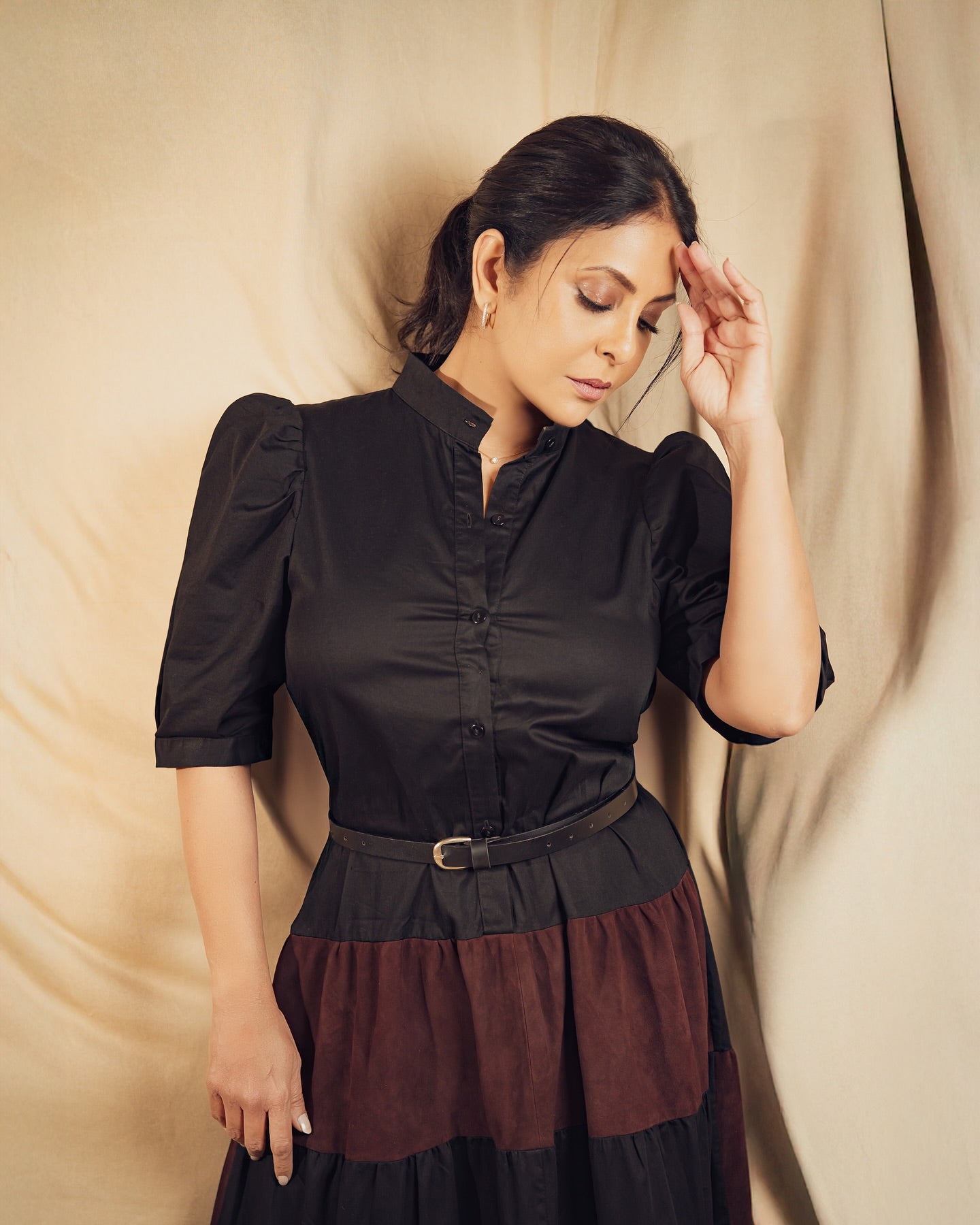 Neha Nagar in Caramello Leather Top