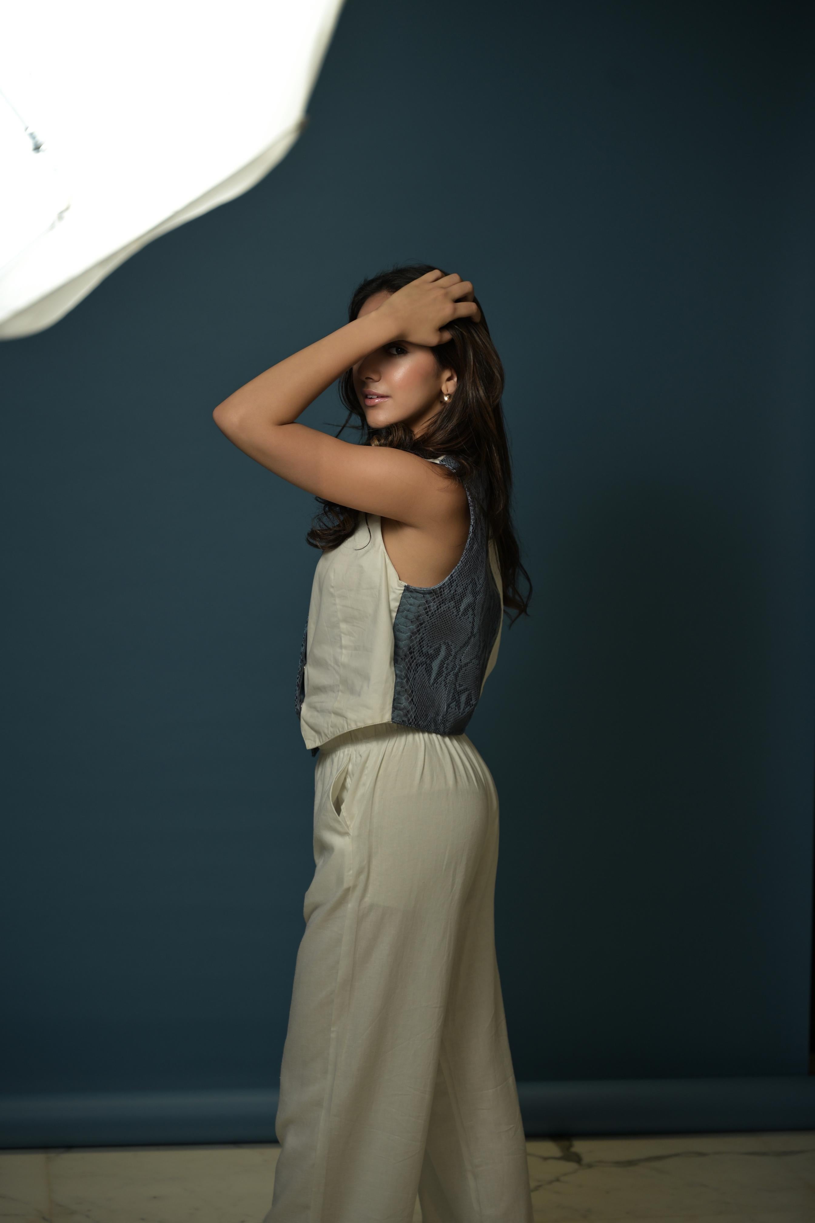 Nikita Vasdev in Meringue Leather Top