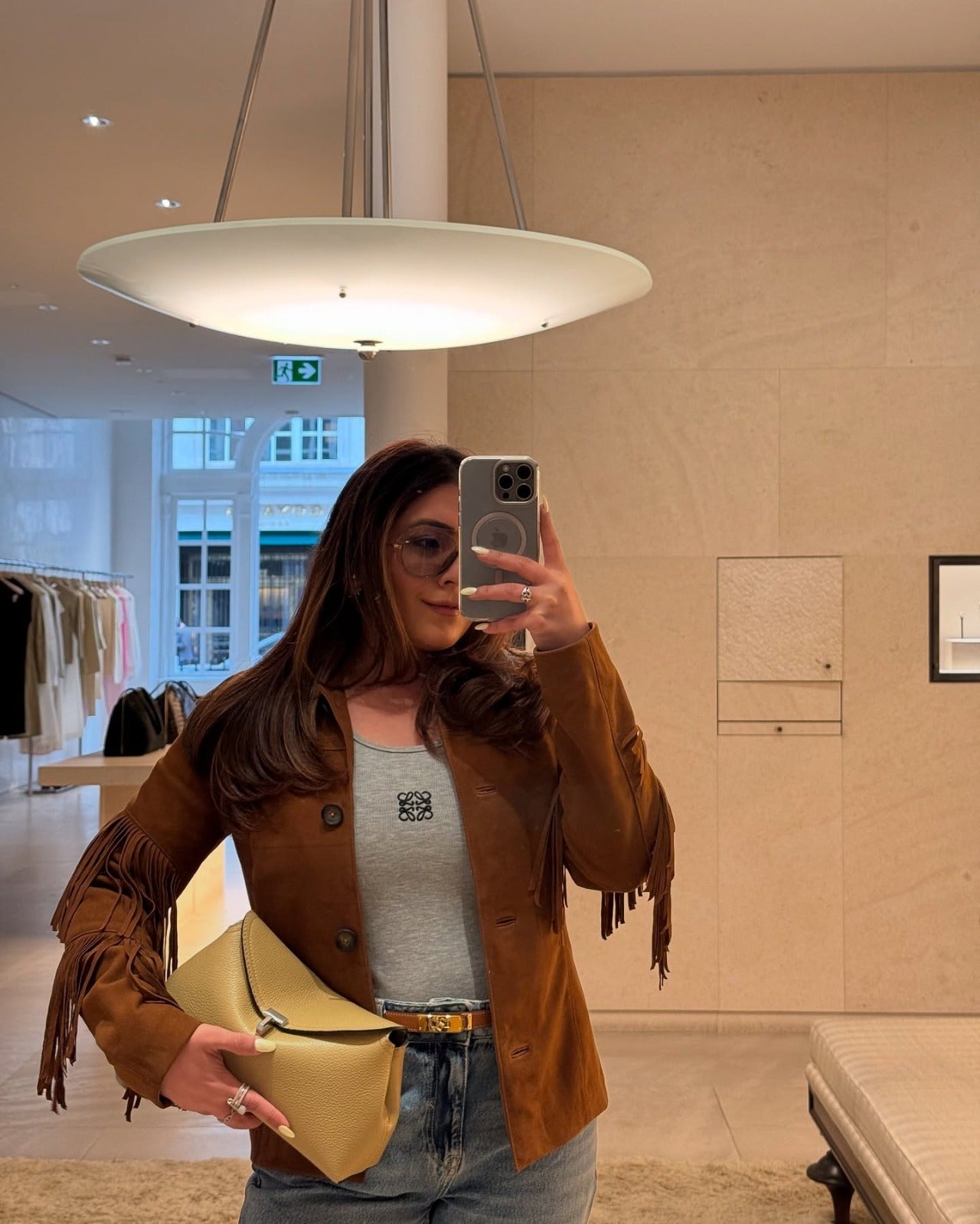 Meghna Pahwa in Ambre Fringe Suede Jacket