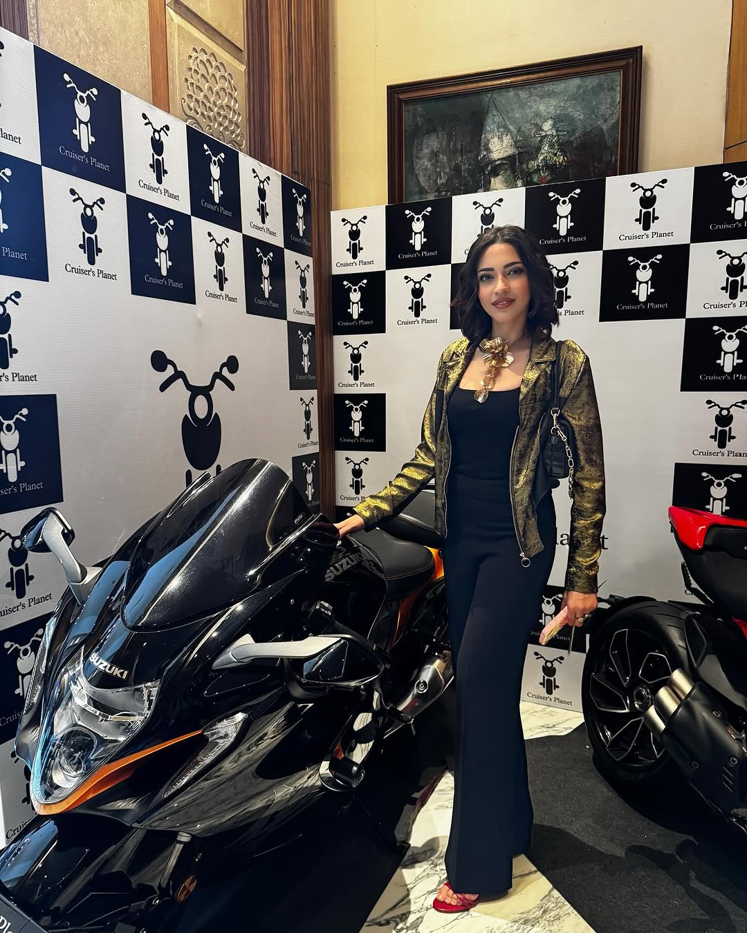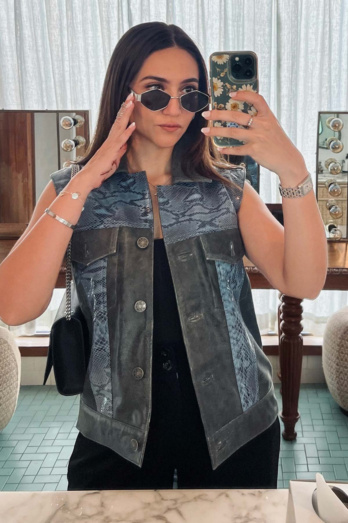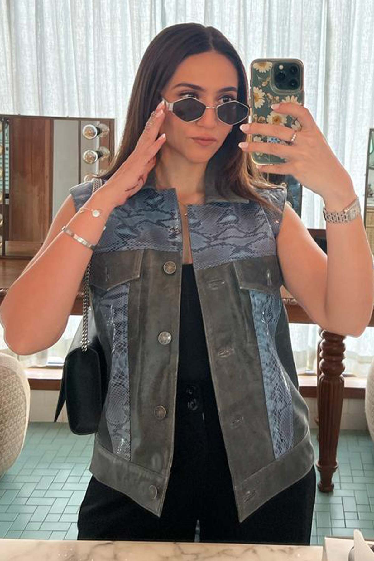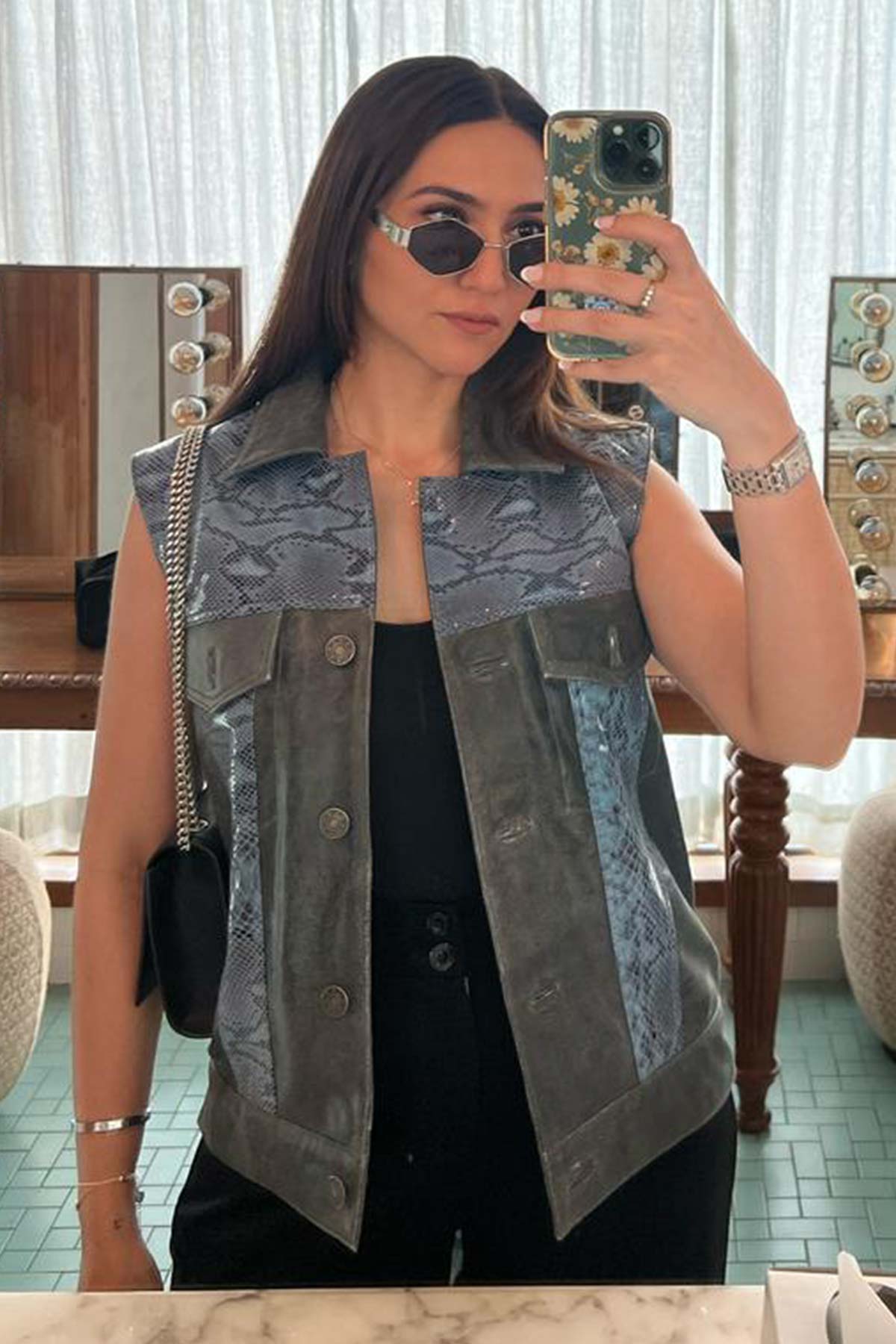Diya Agarwal in Unisex Snakeskin Pattern Leather Jacket
