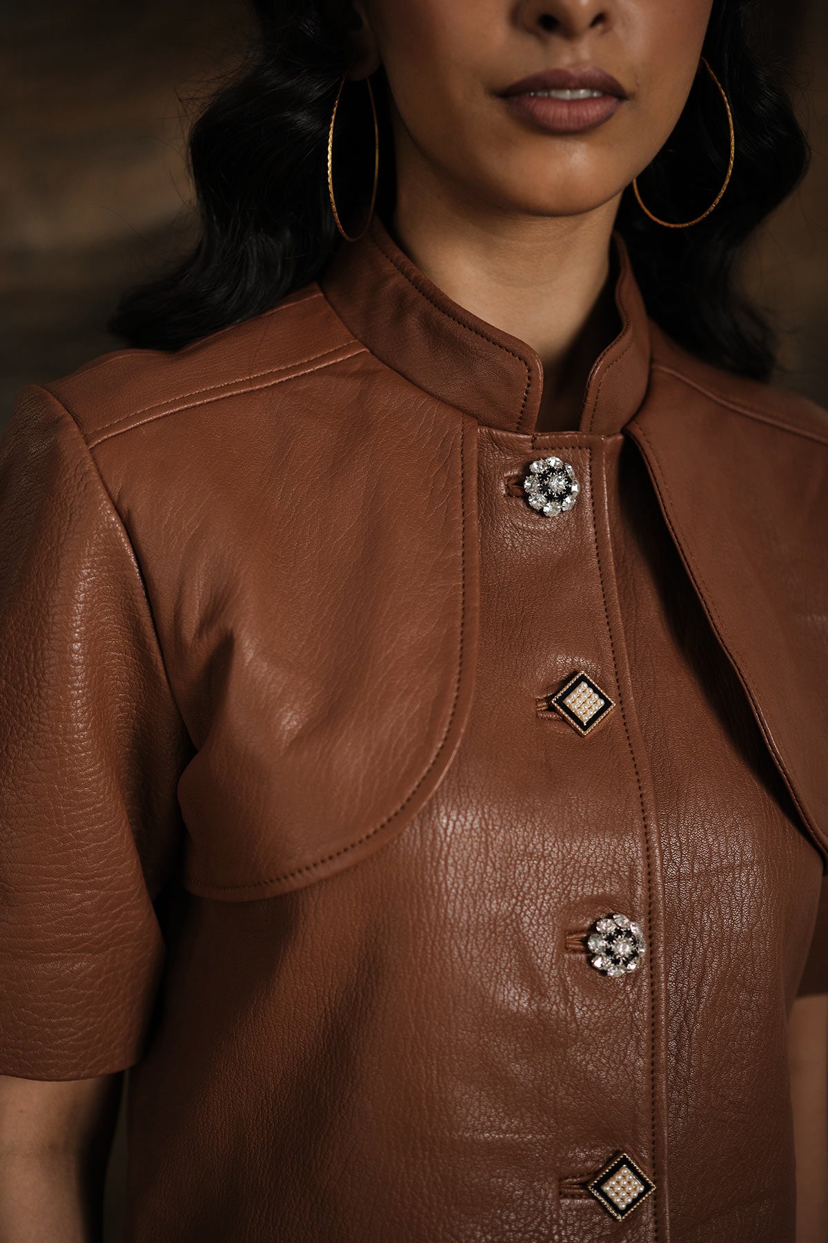 Priyanka Nagar in Mahogany Leather Top